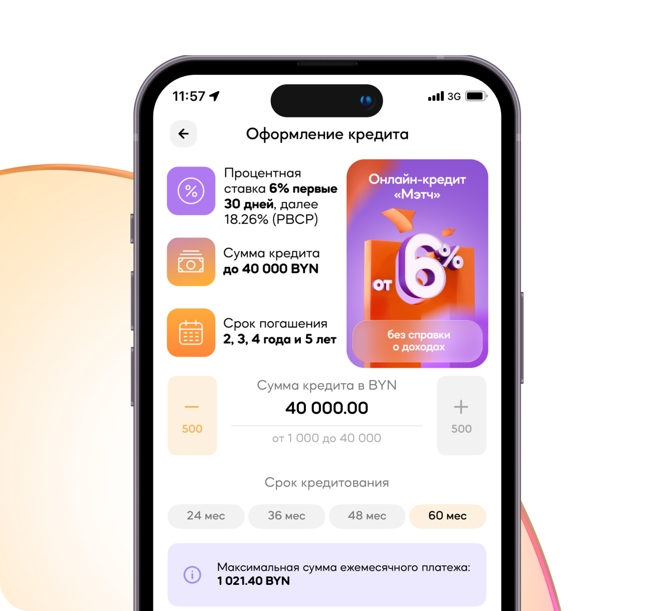 Возьмите кредит online до 40 000 белорусских рублей на 2, 3, 4 года или 5 лет под ставку от 6% годовых.
